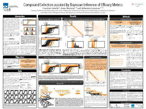 Caroline Labelle’s presentation: Compound selection assisted by Bayesian inference of efficacy metrics, has been accepted at the 28th International Conference on Intelligent Systems for Molecular Biology (ISMB) 2020. The poster is also published online.