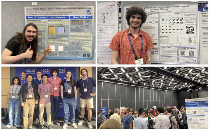 Nicolas Jacquin, Léa Kaufmann ont Carl Munoz They each presented a poster of their research work at the 32nd conference on Intelligent Systems for Molecular Biology (ISMB). The conference was held this year in Montreal, and several members of the Laboratory and the Bioinformatics Platform participated.