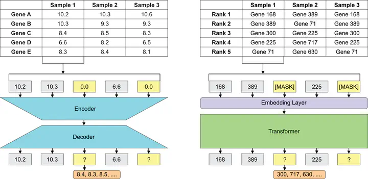 Les représentations vectorielles des gènes (gene embeddings) exploitent de vastes ensembles de données RNA-seq en capturant les patrons de co-expression, permettant ainsi aux réseaux neuronaux profonds (DNN) de caractériser numériquement les fonctions géniques et les rôles régulateurs. Ces modèles sont fortement sensibles à la manière dont les données de séquençage de l’ARN sont encodées, laquelle peut varier entre des valeurs d’expression brutes traditionnelles et des approches fondées sur le classement (ranking), inspirées des word embeddings en traitement automatique du langage naturel.